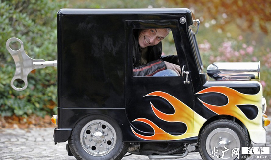 英國設(shè)計師佩里·沃特金斯組裝出世界上體積最小的汽車并獲得牌照,汽車最高時速可達60公里。他組裝的發(fā)條迷你汽車高41英寸(約合1.04米),長51英寸(約合1.29米),寬26英寸(約合66.04厘米)。