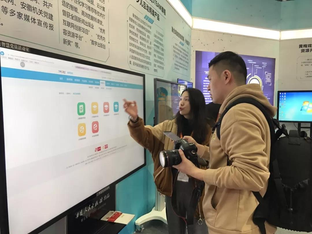 安徽人民出版社參展的“智慧黨員活動室”,是在傳統(tǒng)出版單位豐富的黨建內(nèi)容資源基礎(chǔ)上,通過融合新媒體、新技術(shù),構(gòu)建有平臺、有系統(tǒng)、有內(nèi)容的智能交互式綜合服務(wù)系統(tǒng),為各級黨支部提供標準化建設(shè)服務(wù)。