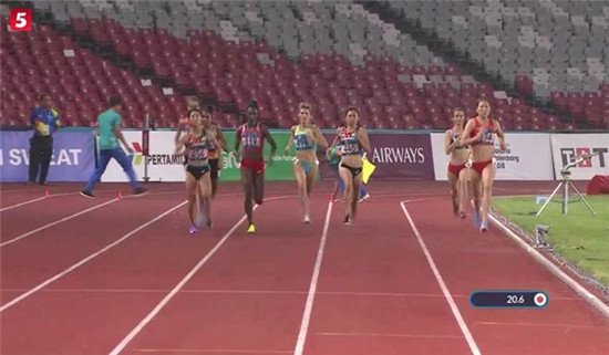 8月28日晚間,雅加達亞運會田徑女子800米決賽,中國選手王春雨以2分01秒80的賽季最好成績奪得冠軍。圖為王春雨在比賽中。中新社記者 王東明 攝