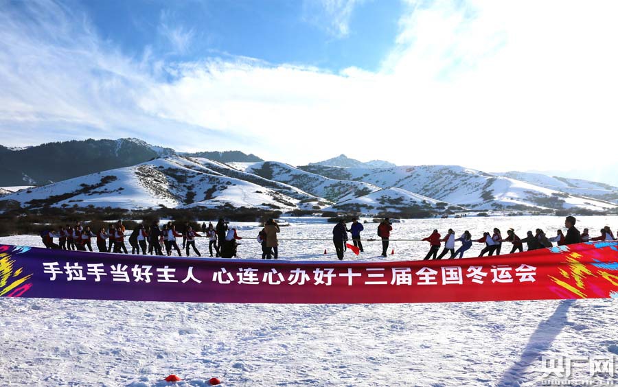 水西溝鎮(zhèn)在雪地里舉行拔河比賽(黃光輝攝) 央廣網(wǎng)北京12月13日消息(記者黃光輝)全國第13屆冬季運動會將在新疆舉行,十三冬點燃了新疆冬天里的一把火,新疆各地掀起冰雪運動熱潮。 中央媒體采訪團(tuán)近日走進(jìn)新疆冰上運動中心、絲綢之路國際滑雪場和天山天池國際滑雪場,深入阿勒泰市將軍山滑雪場,感受到新疆各族人民對冰雪運動的熱愛。記者在人類滑雪發(fā)源地阿勒泰市將軍山滑雪場采訪中看到:阿勒泰市高山滑雪隊的運動員們正在備戰(zhàn)第十三屆全國冬運會,幾十名身穿紫紅色滑雪服的中學(xué)生在教練的帶領(lǐng)下在初級道上學(xué)習(xí)滑雪,一個只有五六歲小孩也在雪場躍躍欲試,還有一位從海南慕名而來滑雪愛好者在這里體驗冰雪運動的樂趣,毛皮滑雪表演隊的小伙子們身穿哈薩克傳統(tǒng)民族服裝、腳踏馬皮滑雪板在雪山上穿梭。 -