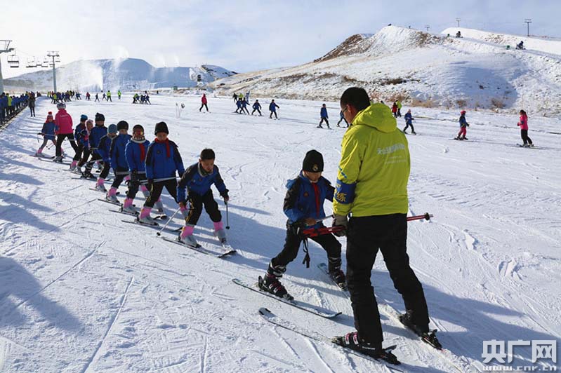 天山天池國際滑雪場孩子們在學(xué)習(xí)滑雪(黃光輝攝) 在阜康市的天山天池國際滑雪場,近百名身穿滑雪服的孩子們在教練的帶領(lǐng)下,在茫茫雪場中一步步向前滑行。成為滑雪場一道亮麗的風(fēng)景線。天山天池國際滑雪場將承接‘十三冬’的六個雪上賽事。天山天池國際滑雪場董事長李新萍:“每到冬季,很多家長都領(lǐng)著孩子到滑雪場滑雪,滑雪運動已經(jīng)成為了新疆人日常生活的一部分。國家非常重視全民健身運動,也會有越來越多的市民投入到冰雪運動中! -
