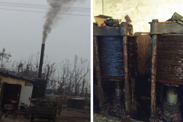 三是土小企業(yè)污染問題突出。太原市晉源區(qū)姚村鄉(xiāng)高家堡村灃起機械有限公司屬于土小鑄造廠,現(xiàn)場督查發(fā)現(xiàn)其違法生產(chǎn),采暖鍋爐為直燃鍋爐,無任何環(huán)保設(shè)施,冒黑煙。焦作沁陽市丹東鑄件有限公司沖天爐冒黑煙,大氣污染情況明顯。辛集市位伯鎮(zhèn)、小辛莊鄉(xiāng)區(qū)域存在數(shù)量眾多的小熬油企業(yè)(將食用油加工廠、化工廠等油渣土作為原料,擠出廢油,再出售),此類企業(yè)中均有小鍋爐(1-4噸),鍋爐均無脫硫設(shè)施,煙囪冒黑煙現(xiàn)象普遍存在。辛集市位伯鎮(zhèn)位伯工業(yè)路中國石化加油站東生產(chǎn)食品的無名小作坊,廠區(qū)鍋爐未經(jīng)過任何污染治理設(shè)施,黑煙直排,現(xiàn)場出示執(zhí)法證后,拒絕開門接受檢查。