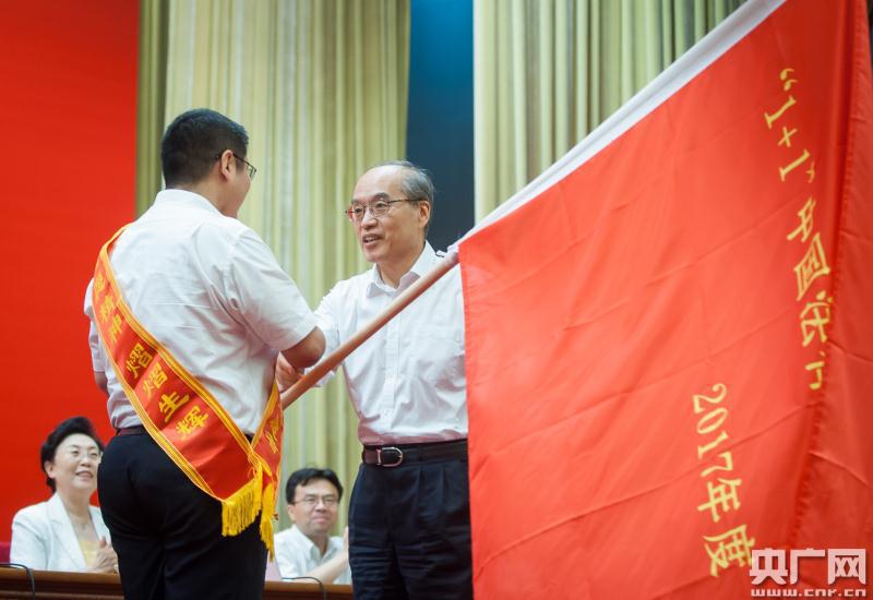 司法部部長張軍向“1+1”法律援助志愿者授旗 王建軍 攝
