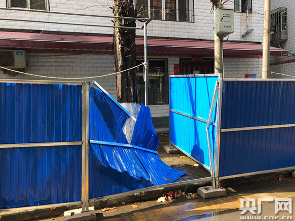 “城中村”開(kāi)放式小區(qū)圍擋被破壞(記者李行健 攝)