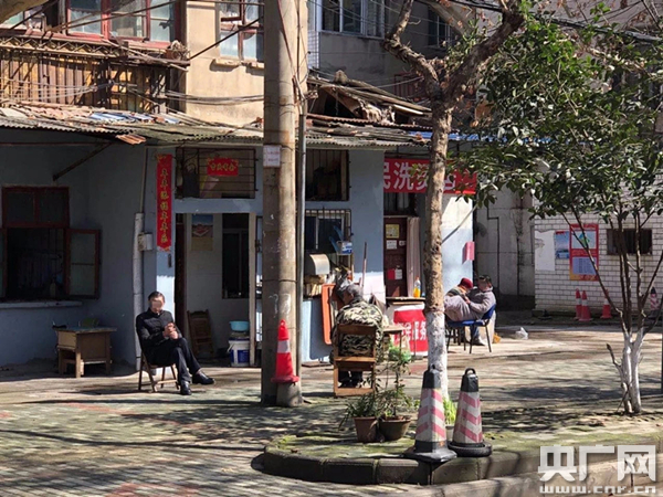 漢陽(yáng)洲頭街內(nèi)向陽(yáng)社區(qū)倒口西村南側(cè)出入口,兩名來(lái)自武漢地產(chǎn)集團(tuán)的下沉干部從上午8點(diǎn)半到下午5點(diǎn)在社區(qū)出入口值班,一位負(fù)責(zé)檢查出入證,一位負(fù)責(zé)檢測(cè)體溫、做記錄。向陽(yáng)社區(qū)包含了多個(gè)小區(qū),共有居民四五千人。一位“下沉”到社區(qū)的干部說(shuō),每天都會(huì)有各式各樣的情況出現(xiàn),需要和社區(qū)密切配合,不斷向居民普及!皠偛拍莻(gè)婆婆住對(duì)面的小區(qū),她沒(méi)有這個(gè)社區(qū)的出入證,她要去里面看看蛋糕店開(kāi)沒(méi)開(kāi)門(mén),她想去買(mǎi)蛋糕!