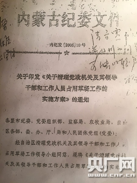 2006年內(nèi)蒙古自治區(qū)區(qū)紀(jì)委文件(央廣網(wǎng)記者 白宇 攝)