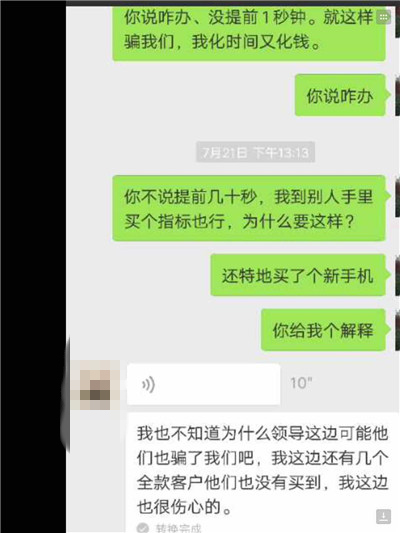 小劉:沒有提前。我點進去不行,返回來再去點,不行了,一片紅了。我當時問過銷售了,全款客戶大概是150人左右,房子是400來套,我們再怎么慢,200套總是能給我們留著的吧?