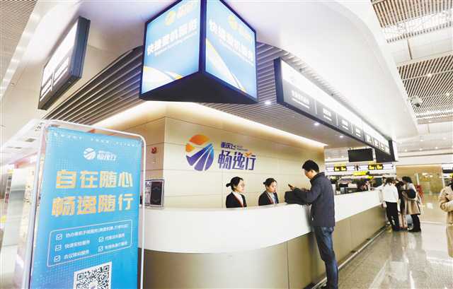 重慶日報(bào)記者在現(xiàn)場看到,T3航站樓內(nèi)、外均設(shè)置了“重慶飛·暢逸行”專用指引標(biāo)識,指引旅客前往“重慶飛·暢逸行”服務(wù)站點(diǎn),向工作人員咨詢相關(guān)產(chǎn)品。
