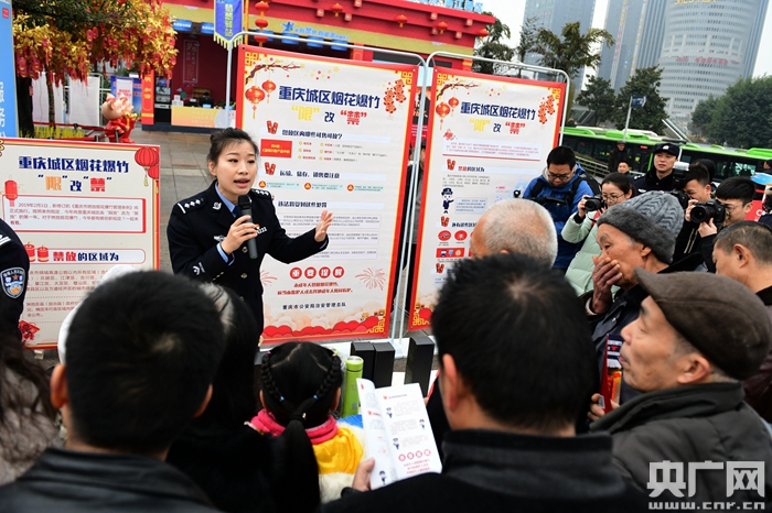 “禁止燃放煙花爆竹,共創(chuàng)文明綠色家園!1日開始,主城區(qū)繞城高速以內(nèi)區(qū)域以及北碚區(qū)、渝西片區(qū)城市建成區(qū)全年禁止燃放煙花爆竹。違法燃放將受處罰!”活動現(xiàn)場,治安總隊民警通過懸掛宣傳禁放條幅、向過往旅客尤其是外地返渝群眾分發(fā)《重慶市燃放煙花爆竹管理條例》和《重慶市人民政府關于加強燃放煙花爆竹管理的通告》、贈送宣傳手冊和小禮品等方式,宣傳禁止燃放煙花爆竹相關知識,讓大家意識到燃放煙花爆竹的危害,引導大家提高守法自覺性,文明過年、平安過節(jié)。同時,民警還耐心向大家講解警方服務學校29條、社會面大巡防等相關措施以及戶政方面的各項便民利民新舉措。