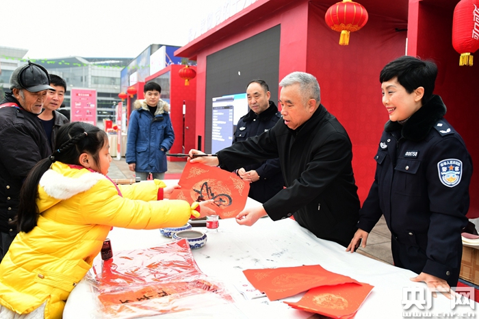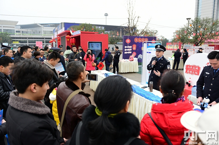 央廣網(wǎng)重慶1月31日消息(記者陳鵬)還有幾天就要過年了,為給旅客朋友們保駕護航,30日上午,重慶火車北站南廣場“夢想驛站”攜重慶警方,結(jié)合春運特點,通過小知識有獎問答、現(xiàn)場視頻宣講、發(fā)放宣傳資料等方式,開展煙花爆竹禁放宣傳,為往來旅客送上防范電信詐騙、非法集資、毒品犯罪、盜、扒、騙以及交通安全防范常識。同時,公安文聯(lián)的藝術家們還在現(xiàn)場作畫、寫春聯(lián)和“!弊,為大家送上新春祝福。