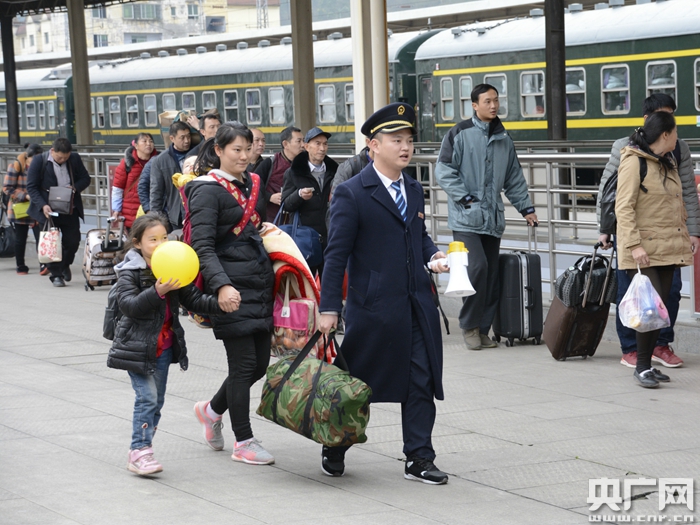 2月12日,涪陵站客運(yùn)職工正在幫扶重點(diǎn)旅客登乘(央廣網(wǎng)發(fā) 通訊員李秋璇 攝)