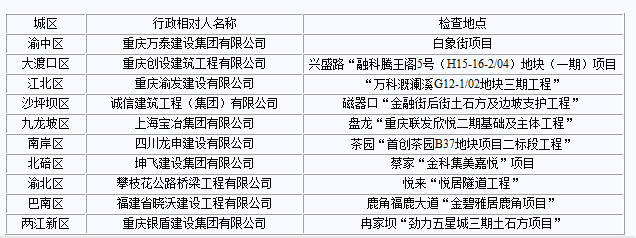 2月19日,市城市管理局發(fā)布了1月主城“揚塵整治”巡查通報情況。上月,渝北區(qū)攀枝花公路橋梁工程有限公司悅來“悅居隧道工程”等10個工地因為揚塵控制不力受到通報批評(見圖表)。