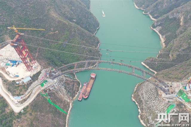 鄭萬鐵路重慶段巫山大寧河雙線大橋鋼管拱肋(央廣網發(fā) 通訊員羅瀟 攝)