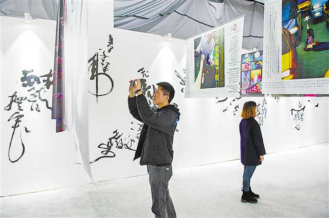 十一月十二日,巴南區(qū)華熙LIVE,龍璽華文創(chuàng)意大展上,嘉賓用手機(jī)拍攝喜愛的作品。記者 謝智強(qiáng) 攝