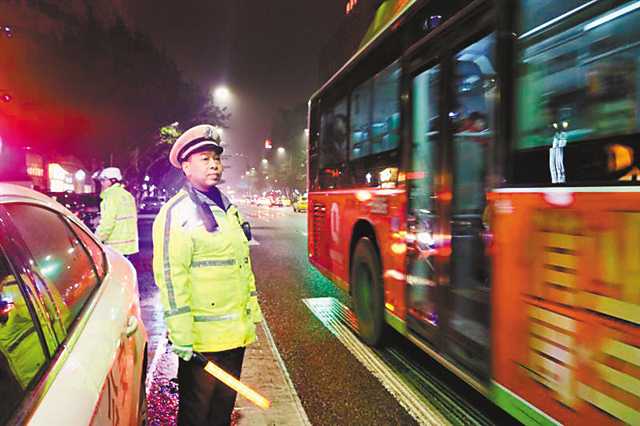 姜瑞華正在疏導交通。(重慶市公安局供圖)