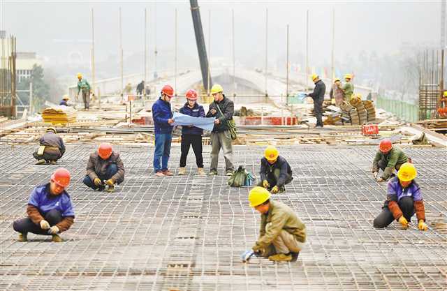 3月1日,建設工人正在重慶軌道交通1號線尖璧段控制性工程——璧山站緊張施工。