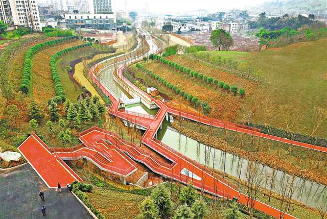 巴南區(qū)新華村社區(qū)公園,市民行走在步道上。(本報(bào)資料圖片)首席記者 謝智強(qiáng) 攝