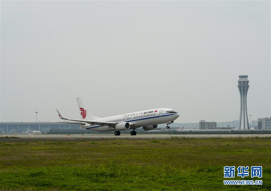 3月11日,一架國航客機(jī)從重慶江北國際機(jī)場的跑道上起飛。