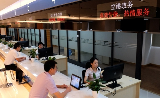 空港政務(wù)中心位于廣州花都區(qū)空港大道9號(hào)空港跨境電子商務(wù)試驗(yàn)園A4棟二層,總建筑面積約1800平方米,內(nèi)設(shè)自助服務(wù)區(qū)、商務(wù)洽談區(qū)、休息等候區(qū)、網(wǎng)辦服務(wù)區(qū)和閱讀休閑區(qū)等功能分區(qū)。首批進(jìn)駐空港政務(wù)中心集中辦理的事項(xiàng)包括規(guī)劃國(guó)土建設(shè)類、民防類、環(huán)保類、水務(wù)類、民政類、衛(wèi)生計(jì)生類、發(fā)展改革類等行政許可及備案150項(xiàng)。