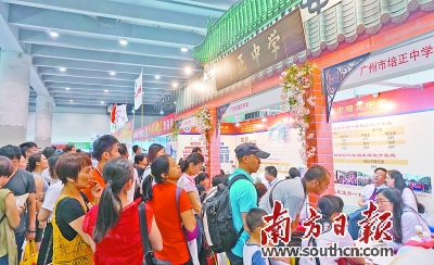 據(jù)南方網(wǎng)報道,28日,廣州市2017年高中階段學(xué)校招生現(xiàn)場咨詢會在琶洲會展中心舉行,近200所學(xué)校和單位現(xiàn)場“展示”,超過5萬名考生及家長前往“摸門”咨詢。