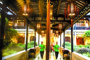 雕欄玉砌間映襯著小橋流水,聽夏蟲輕鳴,看金鯉戲水,南園酒家給食客帶來的不僅是佳肴那么簡單。