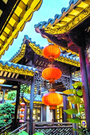 夜色里的一串紅燈籠,在北園酒家的亭臺樓閣中熠熠生輝。