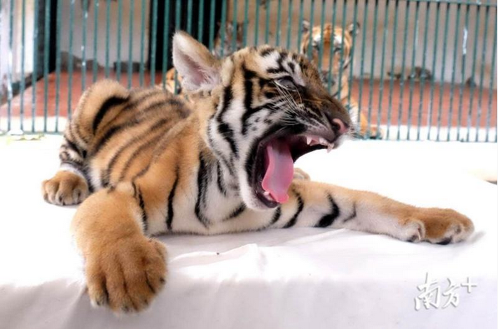 廣州動物園時隔15年后,再度成功繁殖中國特有一級保護動物瀕危物種華南虎,并成功存活一只。6月22日,2個多月的虎寶寶首次亮相。飼養(yǎng)員說,為了這個“愛情的結(jié)晶”,虎爸虎媽非常拼,最多一天交配次數(shù)達到了36次。