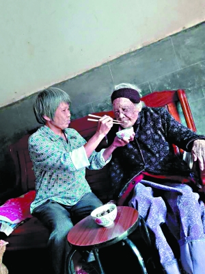 紫金縣百歲孤寡老人李英生前得到劉運(yùn)如無微不至的照料。
