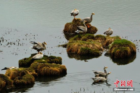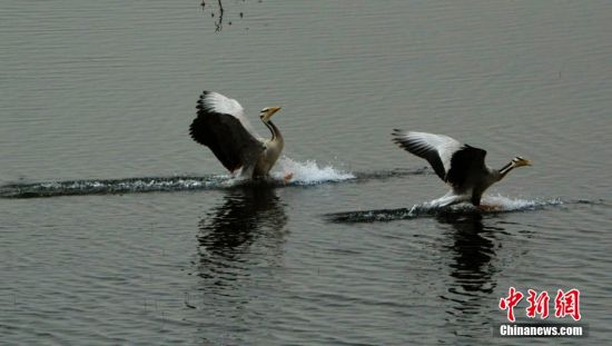 甘肅省肅北蒙古族自治縣鹽池灣國(guó)家級(jí)自然保護(hù)區(qū)分布著8個(gè)明鏡般的湖泊,這里以濕地、沙地、草原及高原等多樣化的生態(tài)系統(tǒng)為主。每年該保護(hù)區(qū)境內(nèi)河流、湖泊冰雪消融、萬(wàn)物蘇醒,上萬(wàn)只黑頸鶴、斑頭雁、大天鵝、赤麻鴨等候鳥(niǎo)陸續(xù)從南方飛抵保護(hù)區(qū),在這里大量繁殖。圖為斑頭雁。烏仁花 攝