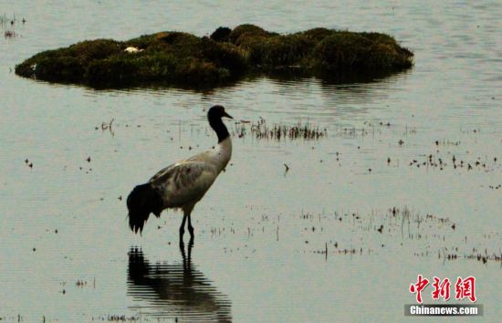 甘肅省肅北蒙古族自治縣鹽池灣國(guó)家級(jí)自然保護(hù)區(qū)分布著8個(gè)明鏡般的湖泊,這里以濕地、沙地、草原及高原等多樣化的生態(tài)系統(tǒng)為主。每年該保護(hù)區(qū)境內(nèi)河流、湖泊冰雪消融、萬(wàn)物蘇醒,上萬(wàn)只黑頸鶴、斑頭雁、大天鵝、赤麻鴨等候鳥(niǎo)陸續(xù)從南方飛抵保護(hù)區(qū),在這里大量繁殖。圖為黑頸鶴。朱蕊 攝