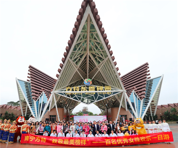 優(yōu)秀女性代表團(tuán)在南寧方特合影(央廣網(wǎng)發(fā) 南寧方特東盟神畫(huà)主題樂(lè)園供圖)
