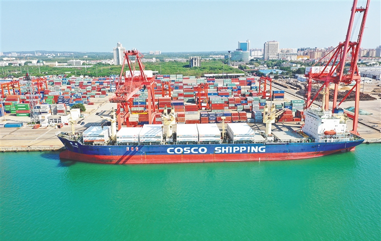 原標(biāo)題:我國(guó)首船LNG罐箱昨從洋浦港裝載起航