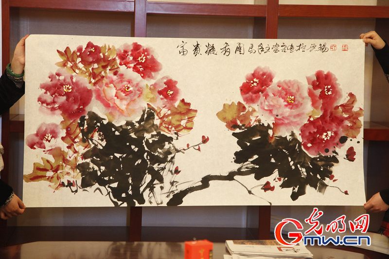 據(jù)介紹,聯(lián)合國教科文組織會議大廳懸掛的《華夏神韻》牡丹圖就是王崇章的作品。2010年,他應邀為人民大會堂創(chuàng)作巨幅花鳥畫作品《國色天香》;2011年又為中南海創(chuàng)作了《紫氣東來》、《春滿人間》、《凝香》等一系列牡丹作品。(陳敏 通訊員 陸云婷)