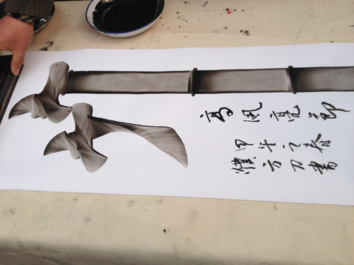在高高的造字臺上,一道獨特的風景出現(xiàn)在人們面前,由市文聯(lián)、市書畫院組織的書法家王濮方、孫慧軍、張春波、張國杰、劉石剛、許亞彪揮毫潑墨,盡意揮灑,以這種獨特的方式表達對造字圣人的仰慕。在現(xiàn)場,市文聯(lián)副主席、市書畫院院長王濮方的刀書《竹》尤為引人注目,表現(xiàn)了高風亮節(jié)的意境,他告訴記者:“在倉頡廟會的最后一天,我們的書法家們來到字圣故里,開展義寫活動,旨在弘揚中華傳統(tǒng)文化,這也是我們今年文化走基層活動的開始!(本記)