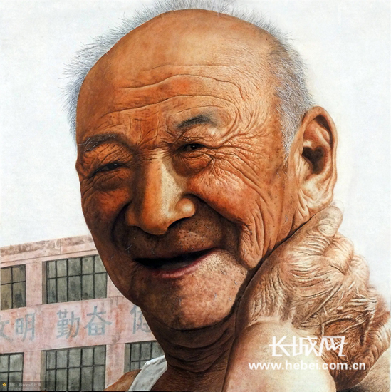 “他代表了相當(dāng)一部分這樣的人。面對(duì)生活的磨難,他沒有反抗,只是在平靜地接受。身邊的人也認(rèn)為,這不是什么,但這不意味著大家不互相關(guān)心、不互相幫助。就像俄國(guó)作家筆下那些的小人物,他、她、他們真實(shí)地存在于我們的身邊!崩顝(qiáng)強(qiáng)告訴記者,這張畫他畫了將近十天,畫每一個(gè)皺紋、每一根胡子、每一個(gè)老年斑的時(shí)候都會(huì)在內(nèi)心去回想這個(gè)人。“我想表達(dá)的也像他呈現(xiàn)出來的那樣:平靜。這本身已經(jīng)是一種正能量,是一種感動(dòng),我只是想真實(shí)地表現(xiàn)!