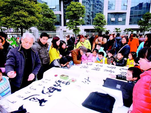 央廣網(wǎng)河南分網(wǎng)消息 據(jù)湖北日?qǐng)?bào)報(bào)道:7日,武漢市東亭二小師生,與湖北省老年大學(xué)書(shū)畫(huà)聯(lián)誼會(huì)20余位書(shū)畫(huà)家及企業(yè)界愛(ài)心人士,共同啟動(dòng)“學(xué)雷鋒活動(dòng)月”儀式。此次活動(dòng)旨在“書(shū)畫(huà)獻(xiàn)愛(ài)心,贈(zèng)書(shū)助教育”;顒(dòng)現(xiàn)場(chǎng),書(shū)畫(huà)家們?yōu)閷W(xué)校文化建設(shè)無(wú)償創(chuàng)作40余幅書(shū)畫(huà)作品,企業(yè)界人士贈(zèng)書(shū)近1000冊(cè)。(通訊員 張湘文 攝)