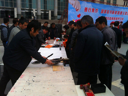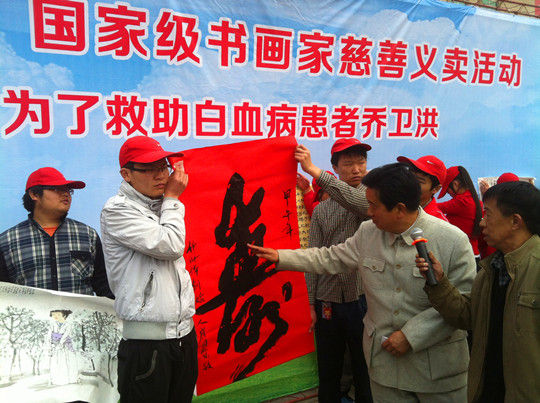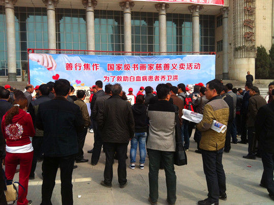 央廣網河南分網消息 據大河網報道:23日上午,“善行焦作—國家級書畫家慈善義賣 —為了救助白血病患者喬衛(wèi)洪”大型公益活動在焦作東方紅廣場舉行。牛芳茂、陳銀須、崔國榮、楊煥峰、劉建國、齊漢文、沈五德等七名書畫家參與此次“善行”,當天上午共募集善款44465元。