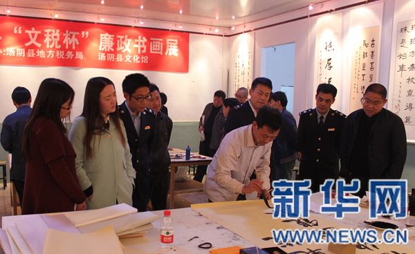 央廣網(wǎng)河南分網(wǎng)消息 據(jù)新華網(wǎng)報(bào)道:近日,在河南湯陰縣地方稅務(wù)局文體活動(dòng)室,書畫愛好者正在揮毫潑墨創(chuàng)作廉政書畫。4月份以來(lái),該局將廉政文化與稅收宣傳有效結(jié)合,在全縣范圍組織開展了“文稅杯”廉政書畫大賽活動(dòng),該縣近30名書畫愛好者現(xiàn)場(chǎng)創(chuàng)作廉政書畫!皟以養(yǎng)德”、“為國(guó)聚財(cái)”、“畫蓮”等作品主題鮮明、寓意深遠(yuǎn),既傳播了廉政文化,又宣傳了稅法知識(shí)。(孟憲敏 李志宏)