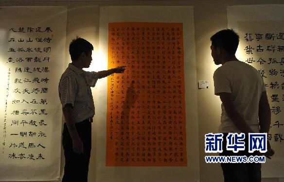 央廣網(wǎng)河南分網(wǎng)消息 據(jù)新華網(wǎng)報(bào)道:“慶祝建黨九十三周年三河、平谷、大廠(chǎng)書(shū)畫(huà)作品聯(lián)展”日前在河北省三河市文化館亮相,共展出來(lái)自三地的書(shū)畫(huà)愛(ài)好者創(chuàng)作的130余幅書(shū)法和繪畫(huà)作品。新華社記者魯鵬攝