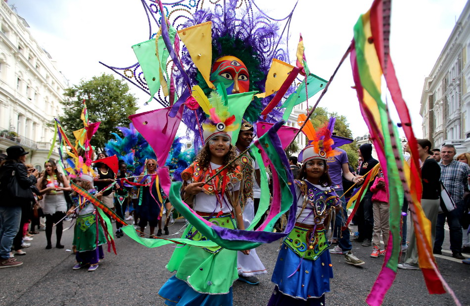 諾丁山狂歡節(jié)起源于1964年,由當(dāng)時聚居在諾丁山地區(qū)的特立尼達(dá)移民發(fā)起,至今已演變成規(guī)模宏大的多元文化節(jié),其規(guī)模僅次于巴西里約熱內(nèi)盧狂歡節(jié),每年吸引大批來自世界各地的游客。(記者 韓巖攝)