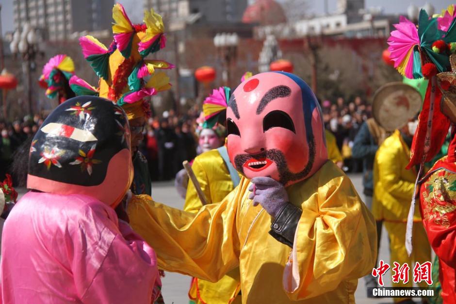 央廣網(wǎng)河南分網(wǎng)消息 3月3日,中國農(nóng)歷正月十三,張掖甘州區(qū)安陽鄉(xiāng)社火隊在表演傳統(tǒng)社火。當日,來自甘州區(qū)7個鄉(xiāng)鎮(zhèn)的社火隊在張掖城區(qū)中心廣場進行表演,近千名隊員上演扭秧歌、舞龍舞獅、劃旱船等民間社火節(jié)目,表演內(nèi)容多取材于神話、歷史演義或民間傳說故事,有著鮮明的地域文化特色,將羊年春節(jié)慶;顒油葡蚋叱,迎接即將到來的正月十五元宵節(jié)。陳禮 攝