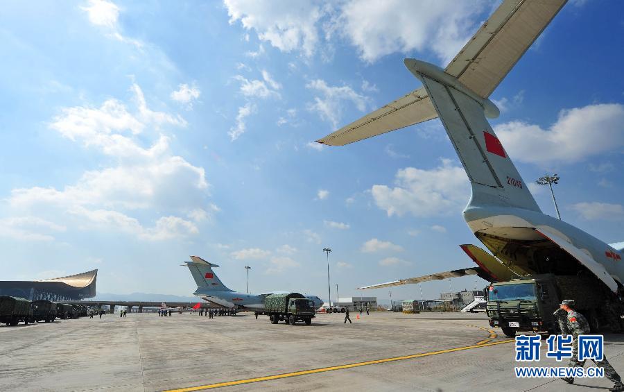 中國空軍伊爾-76運(yùn)輸機(jī)在昆明長水國際機(jī)場裝載救災(zāi)物資(5月3日攝)。從5月5日起,中國空軍再次派出6架伊爾-76飛機(jī),空運(yùn)中國政府向尼泊爾緊急援助的第二批人道主義救災(zāi)物資。 4月27日至5月4日,空軍派出8架伊爾-76飛機(jī)投入尼泊爾抗震救災(zāi),共計飛行20架次。 新華社發(fā)(張恒平 攝)