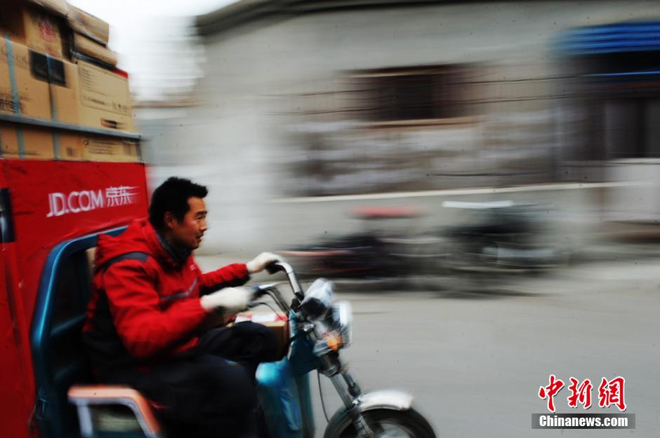 央廣網(wǎng)河南分網(wǎng)消息 11月11日傍晚,一場斷斷續(xù)續(xù)的零星小雨加劇了甘肅省會蘭州初冬的寒意,戶外逼人的寒風催促著城區(qū)上班一族回家的步伐。忙得焦頭爛額的京東派送員蒲澤民一天沒顧得上吃飯,此時他又駕駛著一輛滿載貨物的三輪摩托,直奔回家高峰期的各個住宅小區(qū)“倒時差”送貨。 楊艷敏 攝
