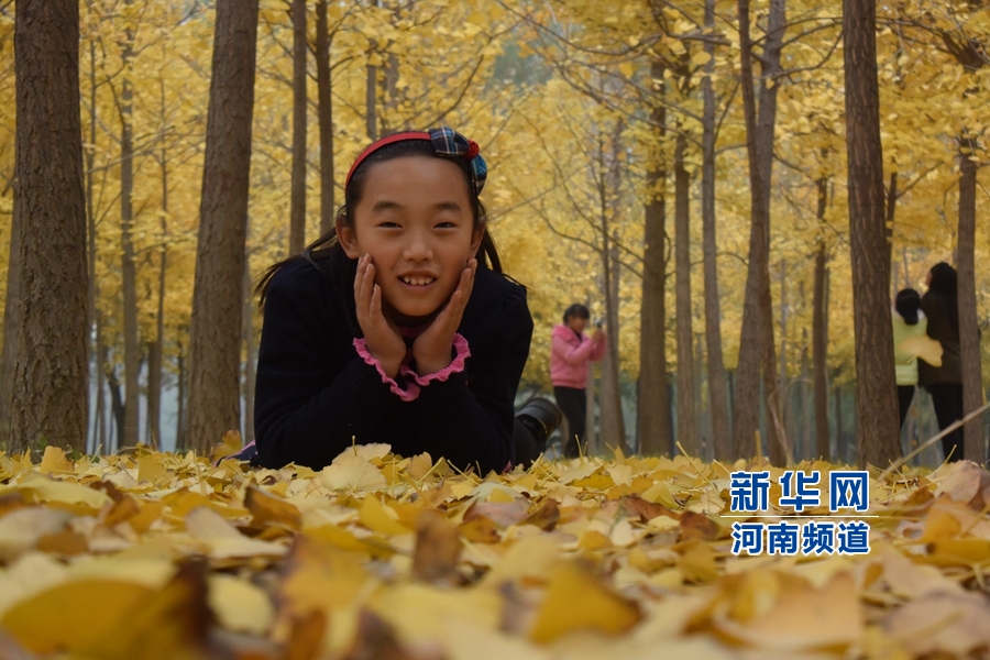 11月14日,一名小女孩在銀杏林游玩。