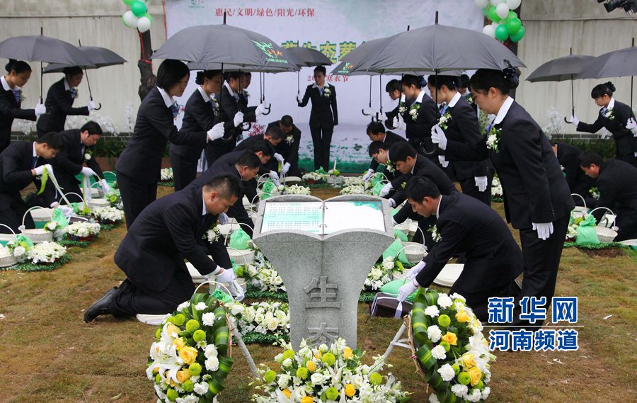 央廣網(wǎng)河南分網(wǎng)消息 當(dāng)日,河南省許昌市舉行“關(guān)懷生命,伴綠長青”免費(fèi)生態(tài)環(huán)保葬集體落葬儀式。此次生態(tài)環(huán)保葬禮共有28個(gè)家庭報(bào)名,“生態(tài)葬”采用不留名、不立碑、骨灰不保留,使用降解骨灰盒落葬的方式,達(dá)到骨灰自動(dòng)分解、回歸自然,土地循環(huán)利用的目的。牛原 攝影