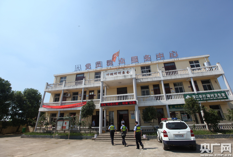 圖為8月23日,橫店東車站派出所,副所長萬玉龍帶領(lǐng)民警劉偉、段浩在什湖村護路聯(lián)防工作站開展工作