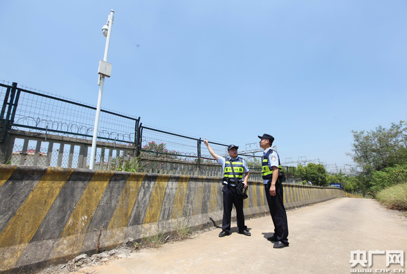 據(jù)了解,這套系統(tǒng)由張力防入侵、視頻監(jiān)控聯(lián)動、護路崗?fù)、警?wù)區(qū)指揮室等4個子系統(tǒng)組成!拔覀冊谥笓]室聽到報警信號后,看到監(jiān)控鎖定了該攀爬人員,同時標(biāo)注了侵入者的精準位置。”增援的民警陳達告訴我們。“橫店東警務(wù)區(qū)有近37公里鐵路線,按風(fēng)險等級劃分成紅、黃、綠‘三色’管理。4號崗?fù)み@段地偏、人雜,是防范重點!蔽覀冊诂F(xiàn)場了解,在4號崗?fù)づ缘淖o路沿線,共裝有監(jiān)控探頭7個,確保了該區(qū)段監(jiān)控?zé)o死角。