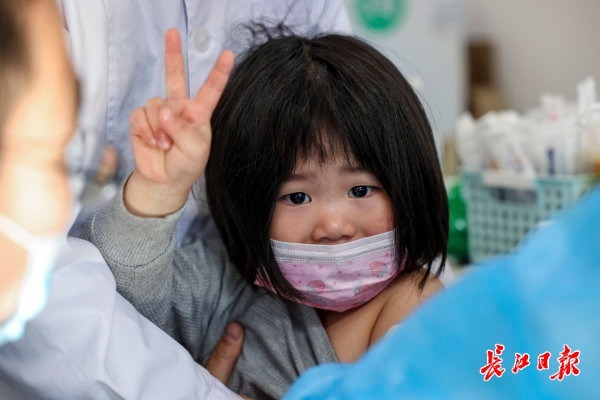 長江日報大武漢客戶端11月14日訊(記者武葉 通訊員王敏)“不要怕,阿姨輕一點(diǎn)!薄罢姘,真勇敢!”11月13日上午,頂琇晶城幼兒園一百多名小朋友在老師帶領(lǐng)下,到唐家墩街社區(qū)衛(wèi)生服務(wù)中心集中接種新冠病毒疫苗,現(xiàn)場不時聽到醫(yī)護(hù)人員為小朋友加油打氣。