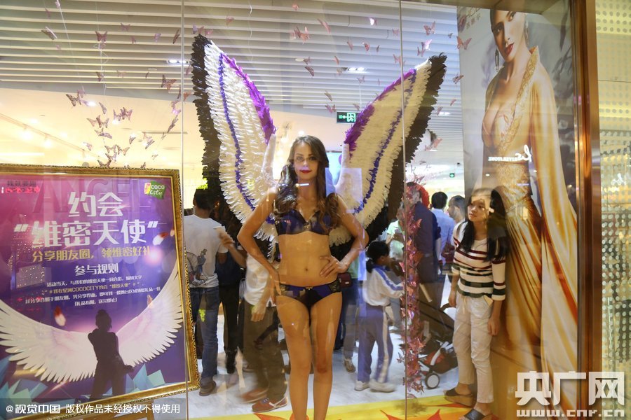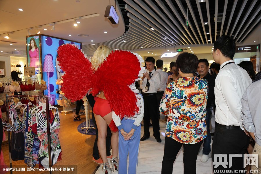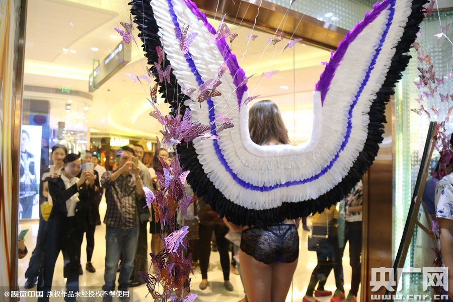 2015年11月11日訊,廣東省深圳市,11月11日晚,一場內(nèi)衣企業(yè)做的山寨"維秘"秀現(xiàn)身深圳,吸引大批男女老少圍觀,清一色的洋模身著內(nèi)衣搭配不同款式的翅膀在T臺走秀,相當(dāng)吸睛,而后更是引來不少人求合影!