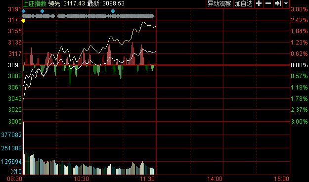 午盤:滬指縮量漲0.67%站上3100 創(chuàng)業(yè)板漲3%
